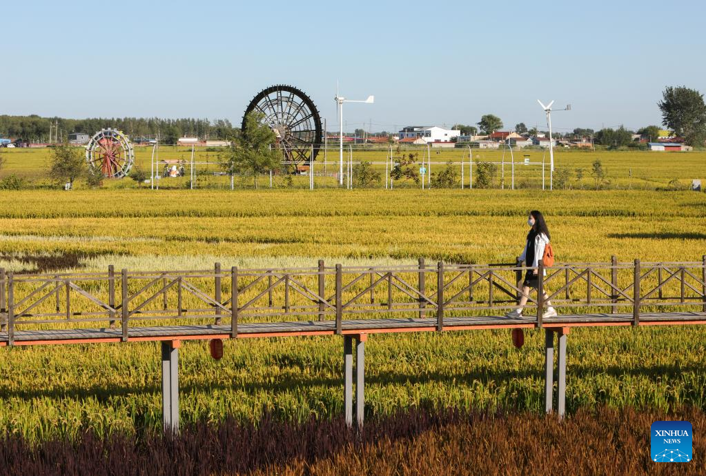 A tourist views scenery in paddy fields in Shenyang, northeast China's Liaoning Province, Sept. 1, 2022. (Xinhua/Yang Qing)