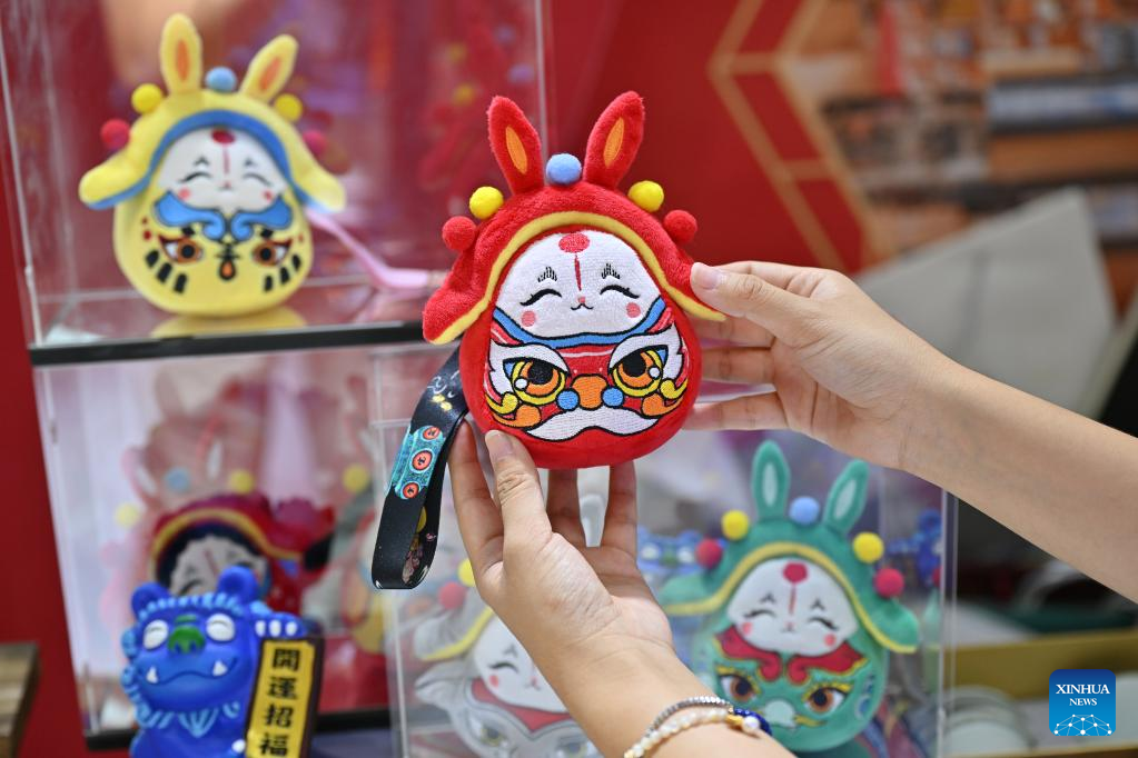 Creative products are seen during the 2022 China International Fair for Trade in Services (CIFTIS) in Beijing, capital of China, Sept. 2, 2022. The 2022 CIFTIS is held in Beijing from Aug. 31 to Sept. 5 at the China National Convention Center and Shougang Park. (Xinhua/Ren Chao)