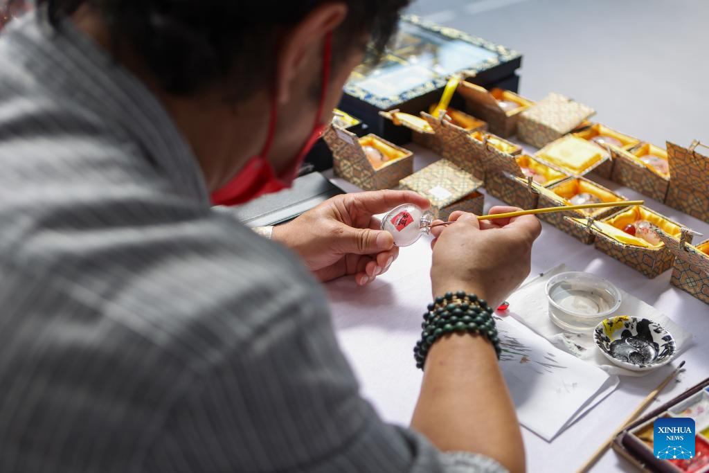 A painter creates inside painting during the 2022 China International Fair for Trade in Services (CIFTIS) in Beijing, capital of China, Sept. 2, 2022. The 2022 CIFTIS is held in Beijing from Aug. 31 to Sept. 5 at the China National Convention Center and Shougang Park. (Xinhua/Hao Zhao)