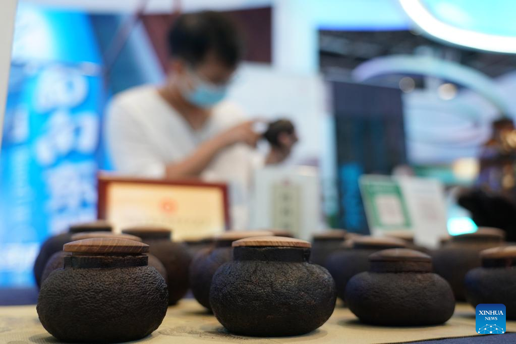 Tea wares are seen during the 2022 China International Fair for Trade in Services (CIFTIS) in Beijing, capital of China, Sept. 2, 2022. The 2022 CIFTIS is held in Beijing from Aug. 31 to Sept. 5 at the China National Convention Center and Shougang Park. (Xinhua/Ren Chao)
