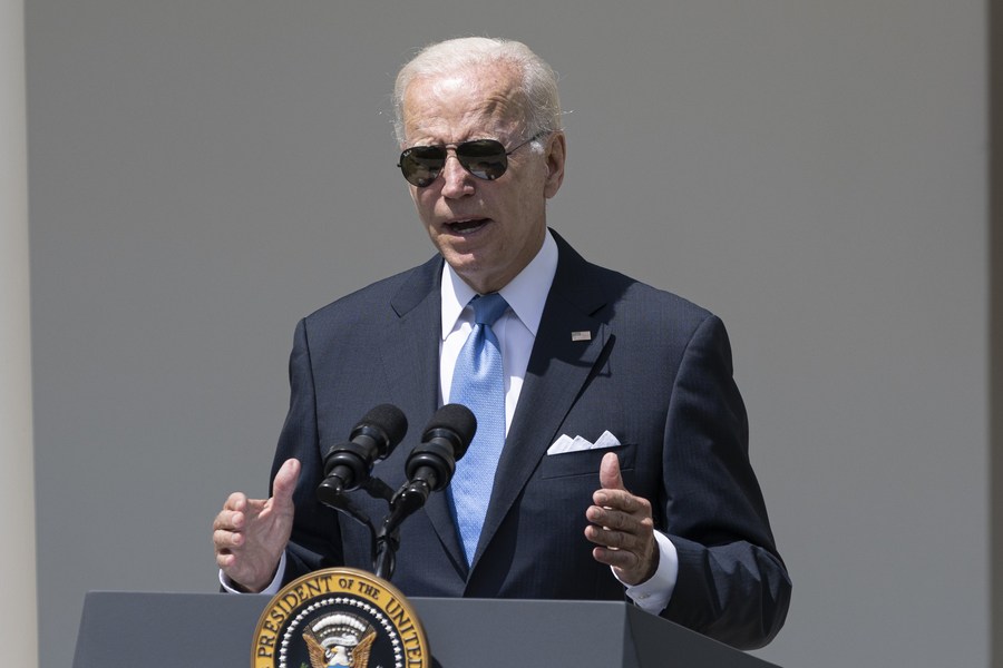 U.S. President Joe Biden speaks in the Rose Garden at the White House in Washington, D.C., the United States, on July 27, 2022. (Photo by Aaron Schwartz/Xinhua)