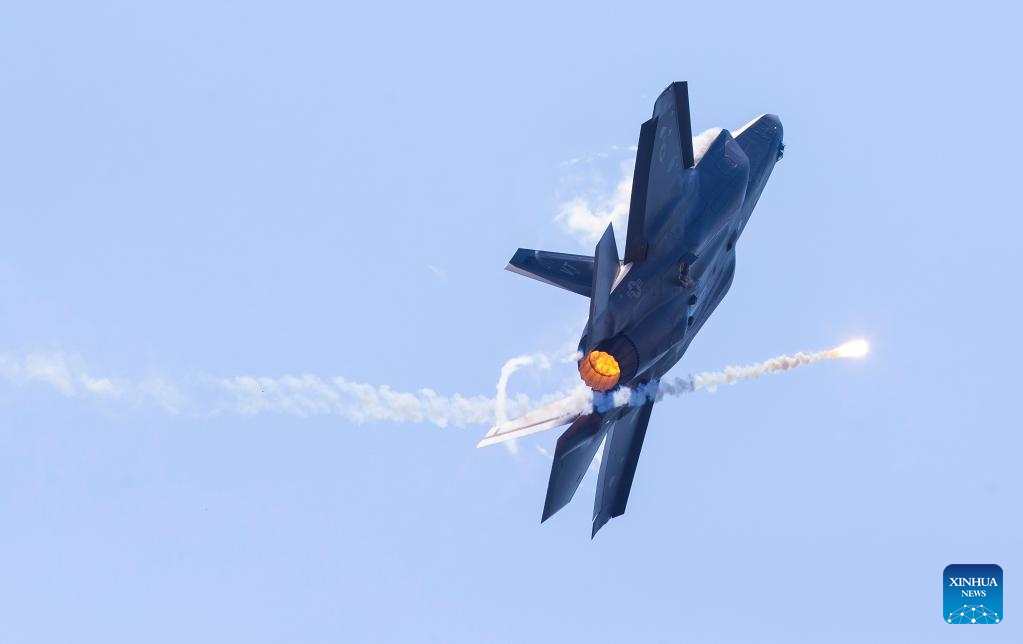 A F-35 Lightning II performs during the 2022 Canadian International Air Show in Toronto, Canada, on Sept. 3, 2022. The three-day event kicked off here on Saturday. (Photo by Zou Zheng/Xinhua)