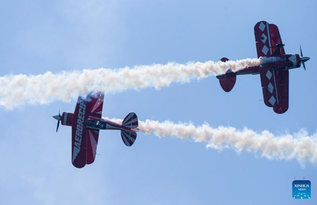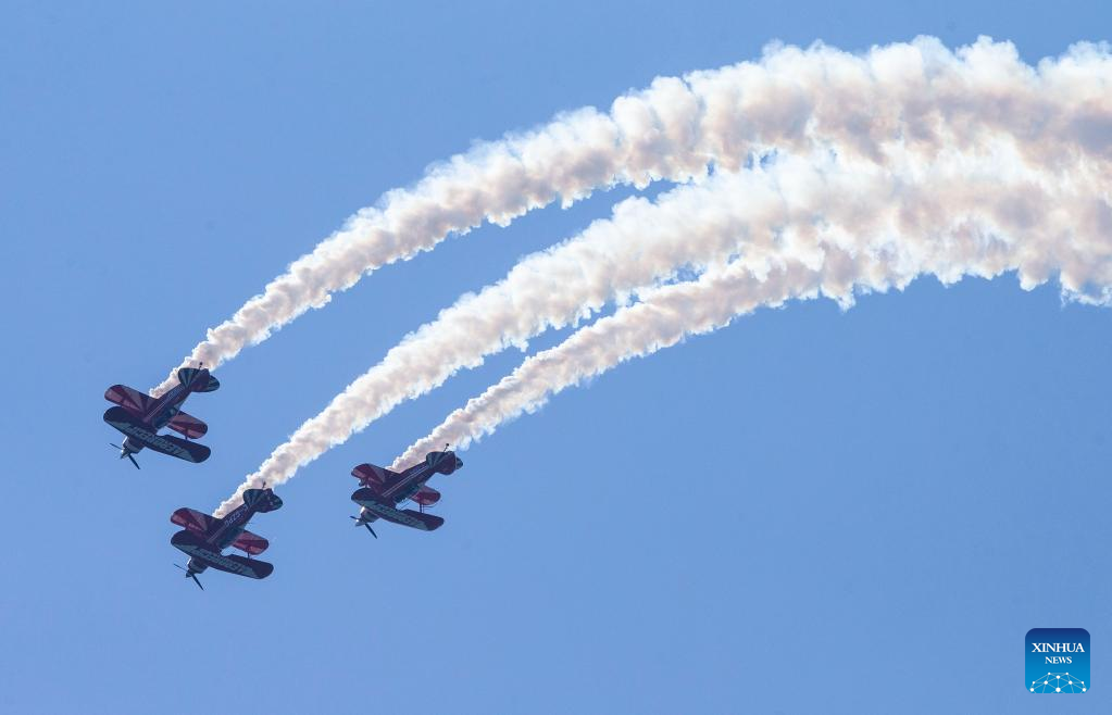 Canada's Northern Stars aerobatic team performs during the 2022 Canadian International Air Show in Toronto, Canada, on Sept. 3, 2022. The three-day event kicked off here on Saturday. (Photo by Zou Zheng/Xinhua)