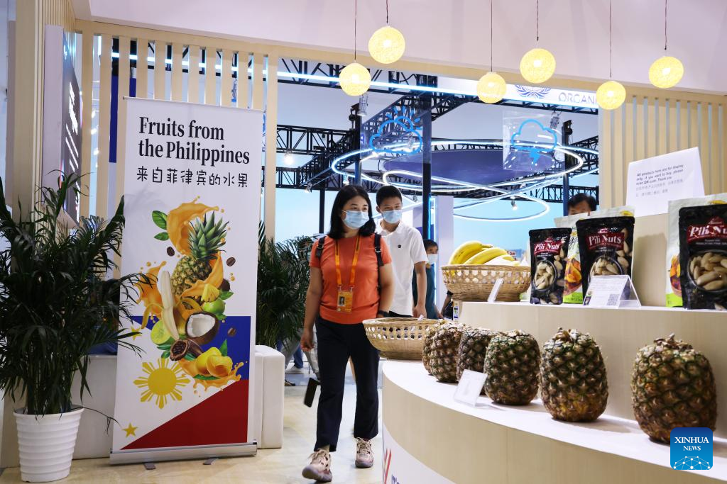 People visit the booth of the Philippines at the China National Convention Center during the 2022 China International Fair for Trade in Services (CIFTIS) in Beijing, capital of China, Sept. 4, 2022. A total of 71 countries and international organizations attend the 2022 CIFTIS held in Beijing from Aug. 31 to Sept. 5. This year's CIFTIS, themed "Cooperate for Better Development, Innovate for a Greener Future," features increased internationalization with the participation of more than 2,400 companies, including over 400 Global Fortune 500 companies and industry-leading enterprises. (Xinhua/Qi Xiaoyi)