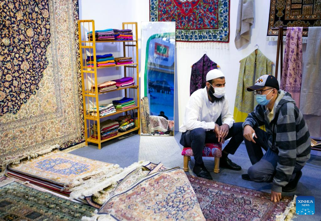 People visit the booth of Pakistan at the China National Convention Center during the 2022 China International Fair for Trade in Services (CIFTIS) in Beijing, capital of China, Sept. 3, 2022. A total of 71 countries and international organizations attend the 2022 CIFTIS held in Beijing from Aug. 31 to Sept. 5. This year's CIFTIS, themed "Cooperate for Better Development, Innovate for a Greener Future," features increased internationalization with the participation of more than 2,400 companies, including over 400 Global Fortune 500 companies and industry-leading enterprises. (Xinhua/Zhang Fan)