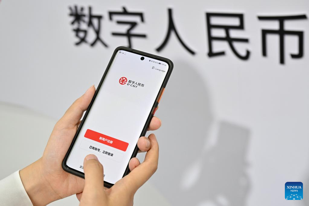 A visitor downloads an APP for e-CNY (digital yuan) at an exhibition of financial services during the 2022 China International Fair for Trade in Services (CIFTIS) at the Shougang Park in Beijing, capital of China, Sept. 4, 2022. (Xinhua/Li Xin)