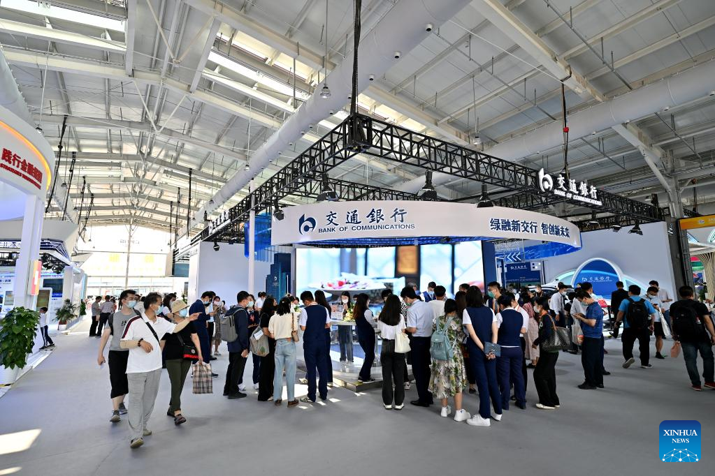 People visit an exhibition of financial services during the 2022 China International Fair for Trade in Services (CIFTIS) at the Shougang Park in Beijing, capital of China, Sept. 4, 2022. (Xinhua/Li Xin)