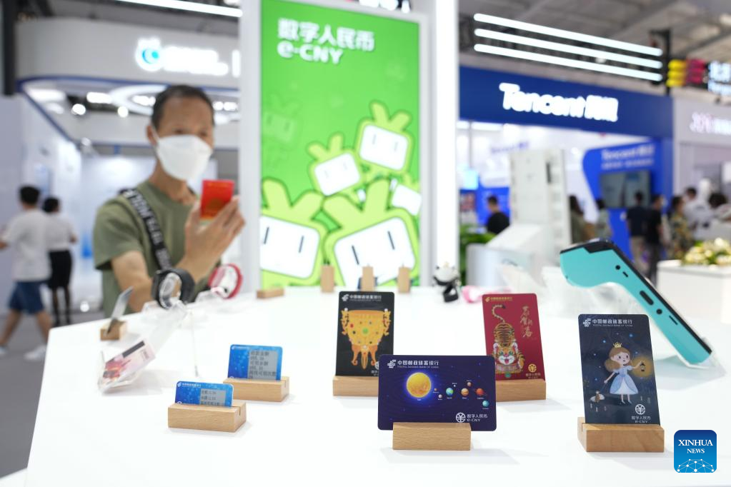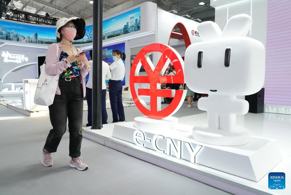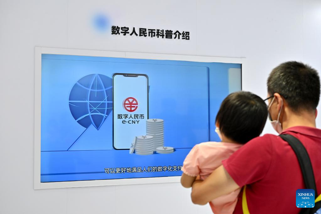 Visitors learn about e-CNY (digital yuan) at an exhibition of financial services during the 2022 China International Fair for Trade in Services (CIFTIS) at the Shougang Park in Beijing, capital of China, Sept. 4, 2022. (Xinhua/Li Xin)