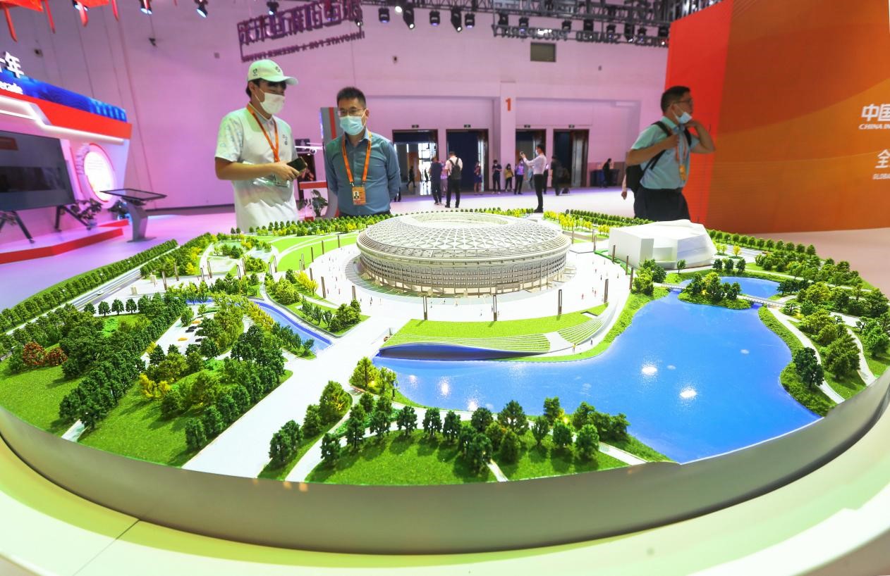 A model of the renovated Beijing Workers Stadium is exhibited at the 2022 China International Fair for Trade in Services held in Beijing, Sept. 1, 2022. (People's Daily Online/Luo Wei)
