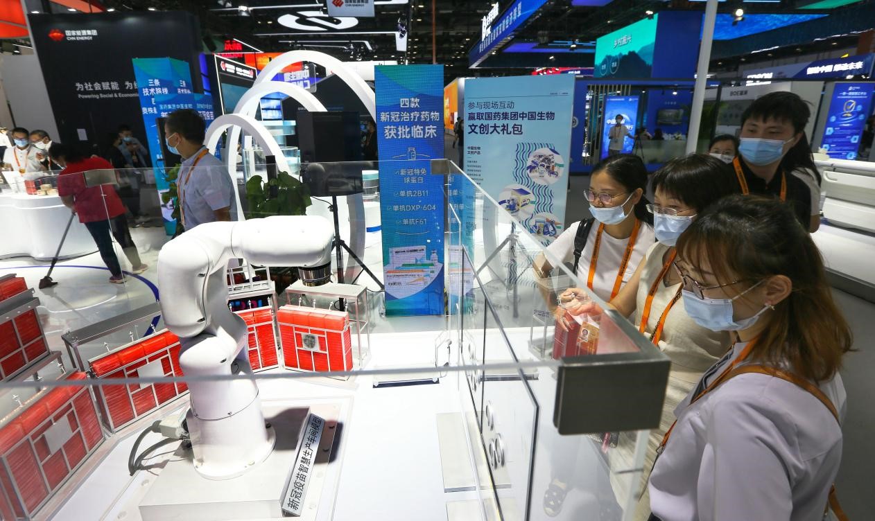 A model of an intelligent COVID-19 vaccine manufacturing system of China National Biotec Group is displayed at the 2022 China International Fair for Trade in Services held in Beijing, Sept. 1, 2022. (People's Daily Online/Luo Wei)