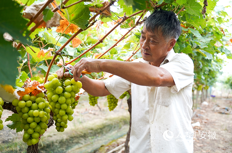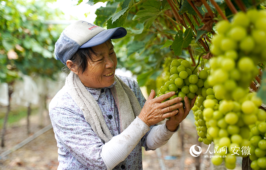 Farmer in E China's Anhui rakes in bountiful profits thanks to grape planting