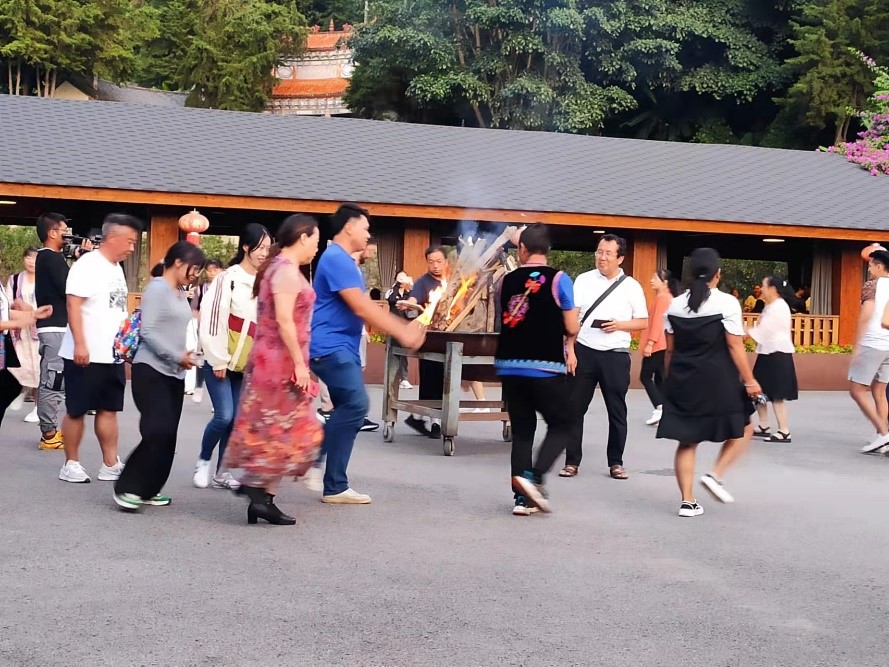 Li Yongkang, a Yi musician, thrilled participants with his rendition of a Yi love song entitled “Walnut Flower.” The song’s romantic lyrics detail the conundrum of a starstruck lover as he questions, “how will you return my heart, that’s been stolen by you?” The warm hospitality of the Yi people was further felt when members of the community hosted a bonfire party to welcome the international delegation.