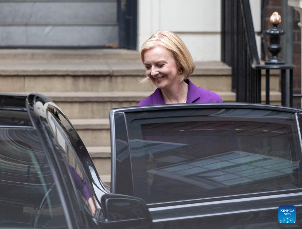 Liz Truss leaves the Conservative Party Headquarters in London, Britain, on Sept. 5, 2022. Liz Truss, foreign secretary of the United Kingdom (UK), has won the ruling Conservative Party's leadership contest and will replace Boris Johnson as the country's new prime minister. (Photo by Belinda Jiao/Xinhua)