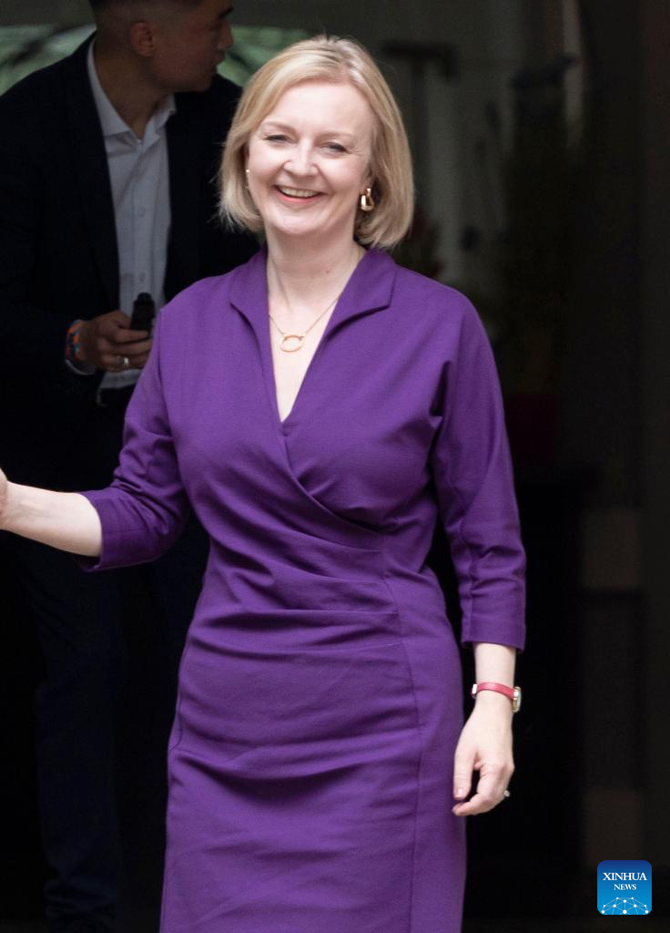 Liz Truss is seen at the Conservative Party Headquarters in London, Britain, on Sept. 5, 2022. Liz Truss, foreign secretary of the United Kingdom (UK), has won the ruling Conservative Party's leadership contest and will replace Boris Johnson as the country's new prime minister. (Photo by Belinda Jiao/Xinhua)