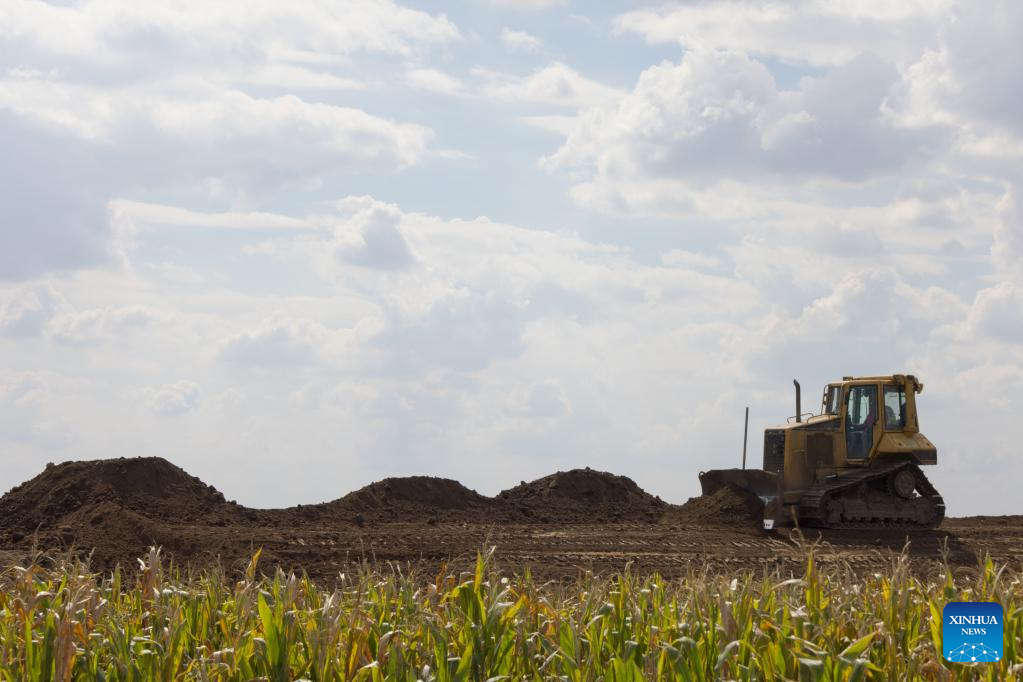 A bulldozer works on a land where the CATL's new plant is scheduled to be constructed in Debrecen, Hungary, on Sept. 5, 2022. Chinese battery producer Contemporary Amperex Technology Co., Limited (CATL) signed a real estate deal with the city of Debrecen in Hungary on Monday, marking the official launch of its second European plant. (Photo by Attila Volgyi/Xinhua)