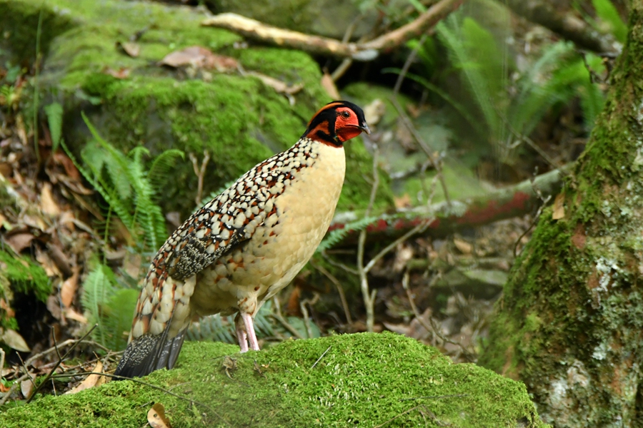 Two female cabot's tragopans, an endangered pheasant species under first-class state protection in China, were recently spotted at the Tianbaoyan national nature reserve in southeast China's Fujian Province.