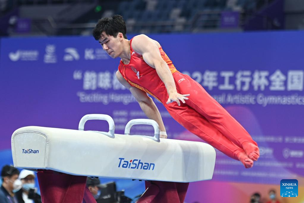 Gold medalist Zhang Boheng of Hunan competes during the pommel horse of the artistic gymnastics men's all-around final at the National Artistic Gymnastics Championship in Hangzhou, east China's Zhejiang province, Sept. 6, 2022. (Xinhua/Xu Yanan)