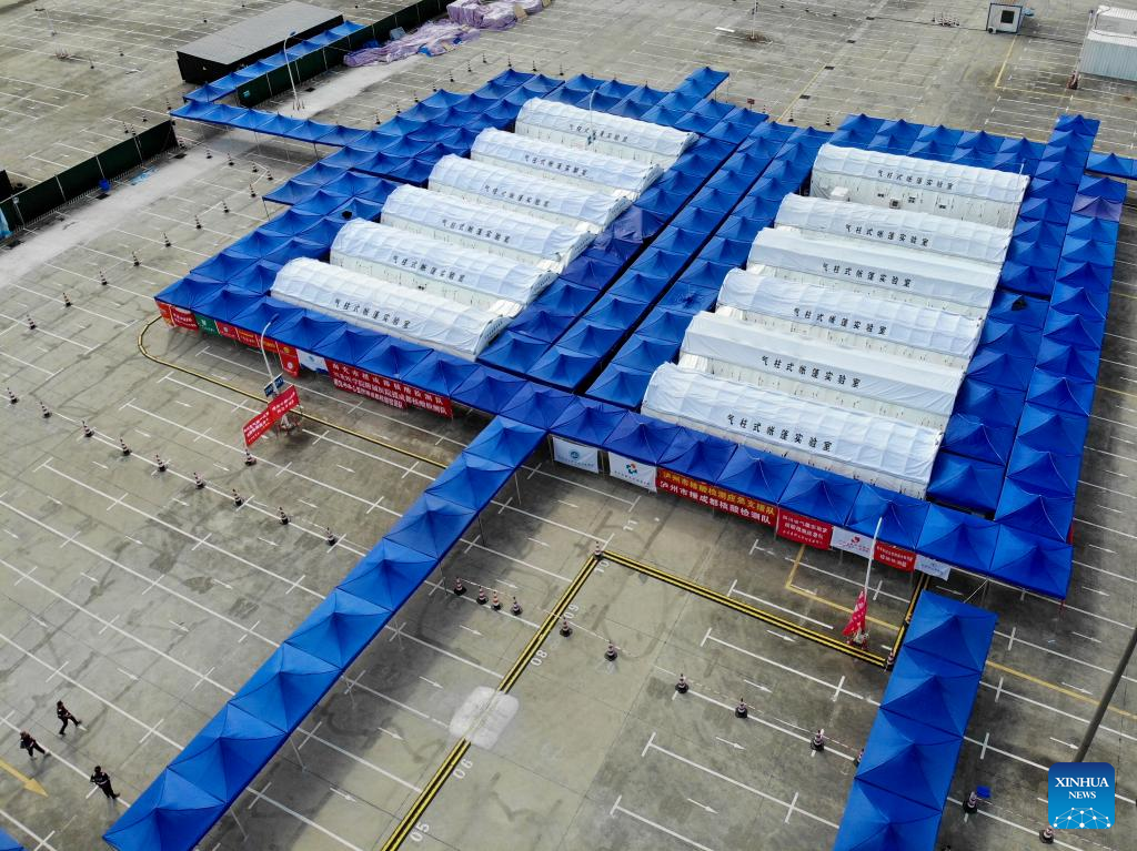 Aerial photo taken on Sept. 5, 2022 shows air-inflated testing labs in Chengdu, southwest China's Sichuan Province.