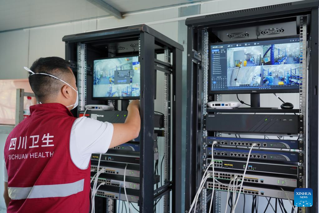 A staff member monitors the operation of air-inflated testing labs in Chengdu, southwest China's Sichuan Province, Sept. 5, 2022.