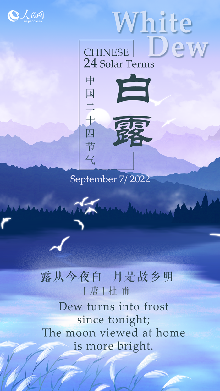 On September 7, we arrive at the solar term called White Dew, or Bailu in Chinese, the 15th solar term of the year. White Dew indicates the real beginning of cool autumn. The temperature declines gradually and vapors in the air often condense into white dew on the grass and trees at night.
