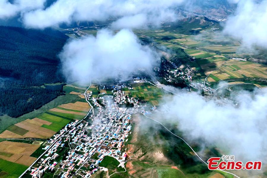 Autumn settles over the Qilian Mountains, Qilian county in Haibei Tibetan autonomous prefecture, Northwest China's Qinghai Province. Golden fields and green grasslands created an unique autumn scenery. (Photo: China News Service/Yang Chunli)