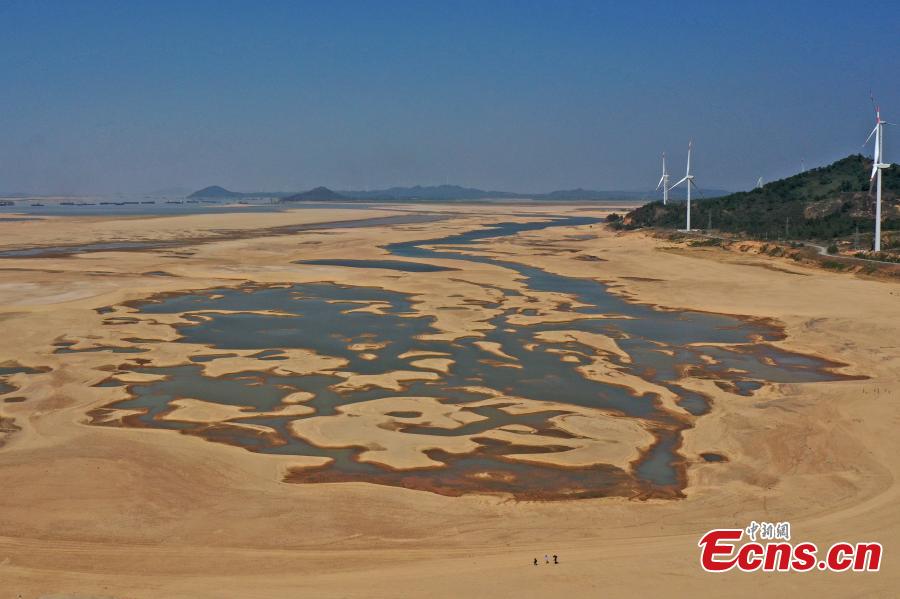 People walk on the dried-up lake bed of Poyang Lake at Duchang county of Jiujiang city, east China's Jiangxi Province, Sept. 6, 2022. (Photo: China News Service/Liu Zhankun)