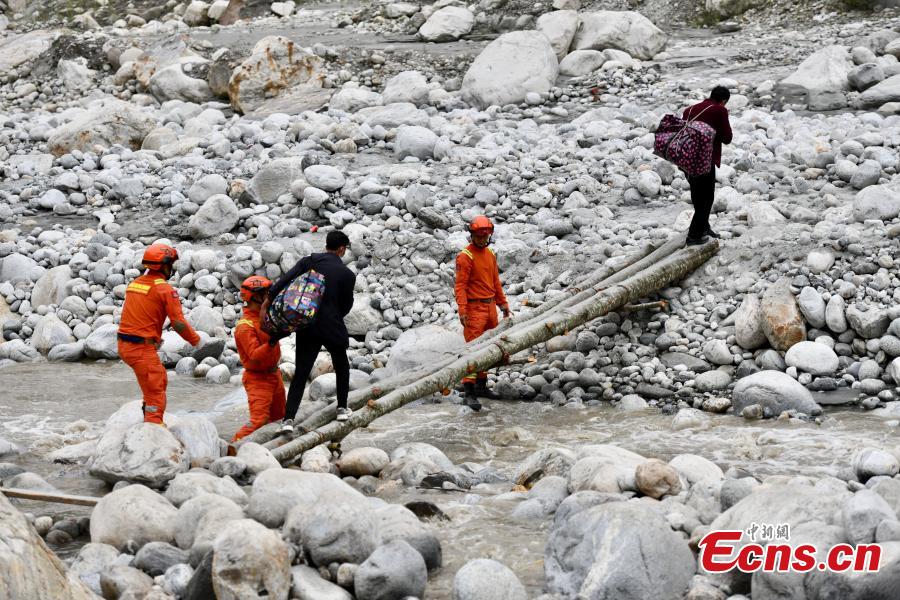 Rescuers transfer villagers at Moxi town of Luding county in Ganzi Tibetan autonomous prefecture, southwest China's Sichuan Province after a 6.8-magnitude earthquake jolted Luding county, Sept. 6, 2022. (Photo: China News Service/Zhang Lang)
