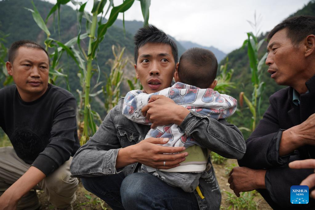 A villager rests in Xingfu Village of Shimian County, southwest China's Sichuan Province, Sept. 7, 2022. A 6.8-magnitude earthquake jolted southwest China's Sichuan Province on Monday, and Shimian County in Ya'an were one of the hardest-hit areas. The quake damaged houses, roads, water conservancy facilities, hydropower stations, and telecommunications.