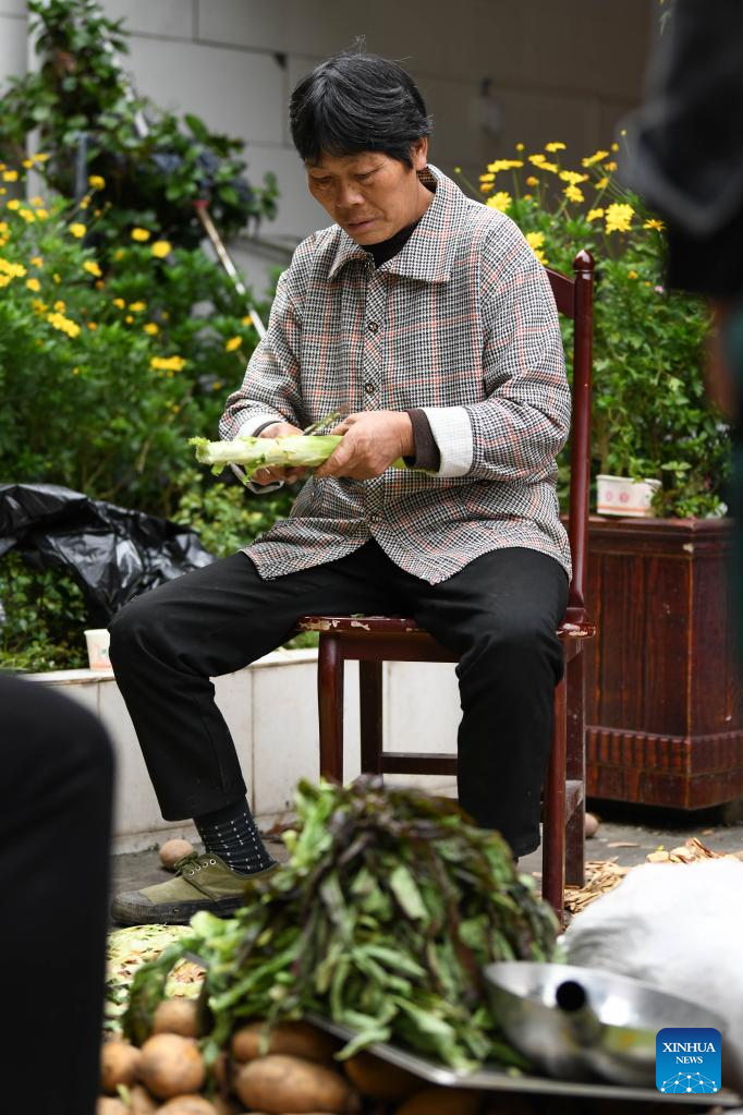 A local villager prepares lunch at a quake relief shelter in Caoke Township of Shimian County, southwest China's Sichuan Province, Sept. 7, 2022. Rescuers arrived on foot on Tuesday afternoon and successfully opened up a "life channel" for Caoke, a township once lost contact with the outside world due to the severely damaged roads after the earthquake. (Xinhua/Xu Bingjie)