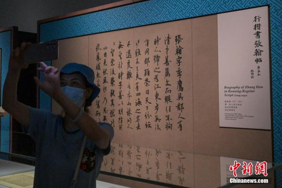 Photo taken on Sept. 7, 2022 shows a Chinese calligraphy of the Tang Dynasty (618-907) on display at Hong Kong Palace Museum. (Photo: China News Service/Chen Yongnuo)