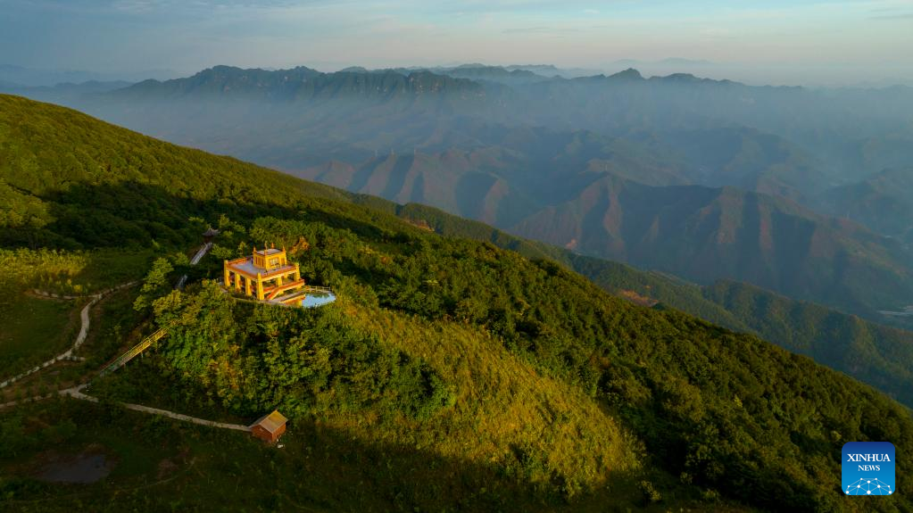 Aerial photo taken on Sept. 7, 2022 shows forests in Hanjiangyuan scenic area in Ningqiang County, northwest China's Shaanxi Province. As the headwater region of the Hanjiang River, the largest tributary of the Yangtze River, Ningqiang County has closed ten mines and promoted a series of ecological protection projects for environmental protection in recent years. The county has also promoted the production of agricultural products including tea, fruits, vegetables, etc., managing and transforming ecological resources to green economy. (Xinhua/Tao Ming)