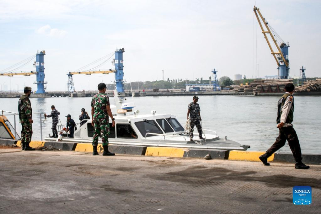 Navy personnel prepare for a search operation of a small military plane after crash at Madura Strait in East Java, Indonesia, Sept. 8, 2022. The pilot and the co-pilot of a small plane of the Indonesian Navy were killed after the plane went down into the water off East Java province on Wednesday, Chief of Staff of the Indonesian Navy Admiral Yudo Margono said on Thursday. TO GO WITH "Pilot, co-pilot killed in Indonesian Navy's small plane crash" (Photo by Kurniawan/Xinhua)