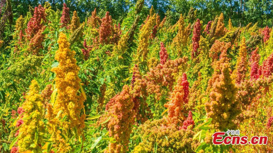 Quinoa has entered harvest season in Wulan county, northwest China's Qinghai Province in Autumn. (Photo: China News Service/Ma Xiang)