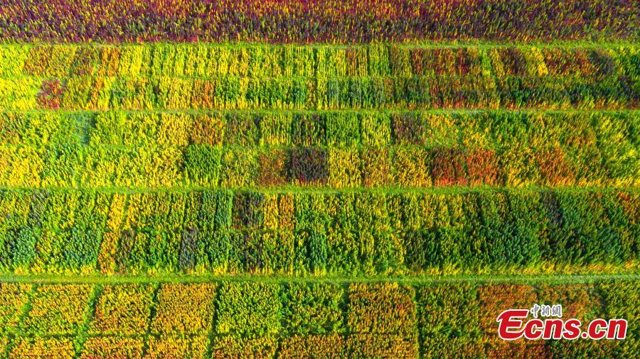 Quinoa has entered harvest season in Wulan county, northwest China's Qinghai Province in Autumn. (Photo: China News Service/Ma Xiang)