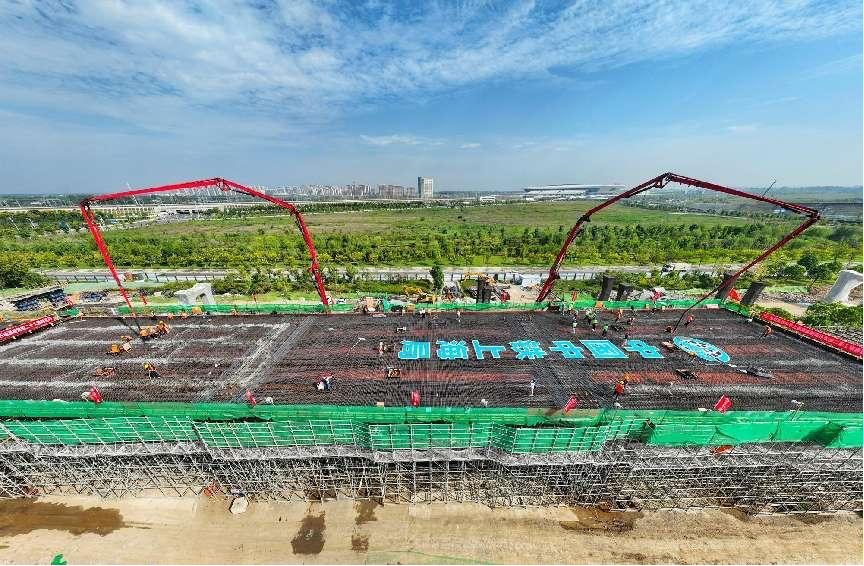 The China Import and Export Fair Complex (Phase IV) is under construction, Sept. 5, 2022. (Photo by Chen Zhiqiang/People's Daily Online)