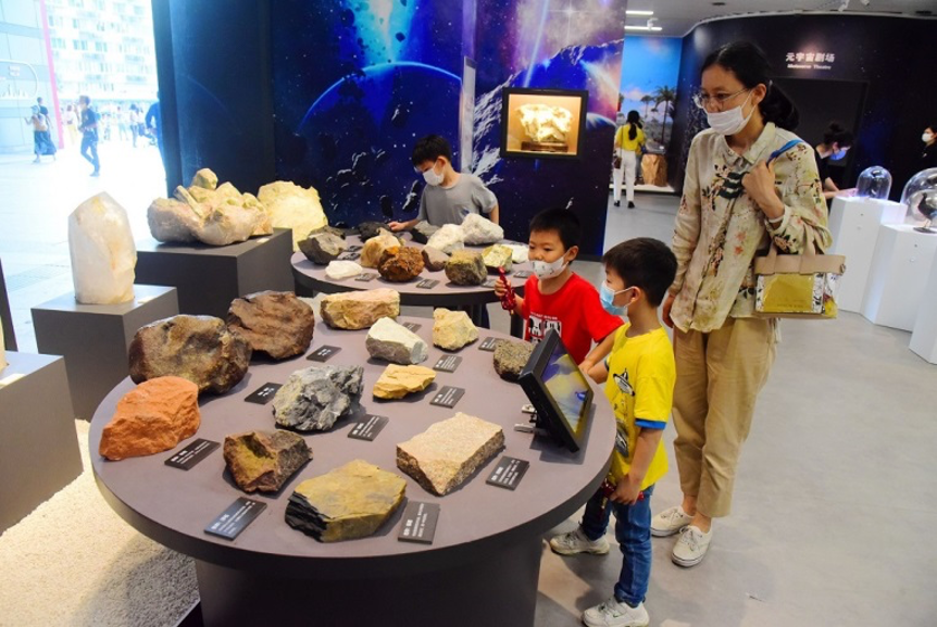 Children watch mineral specimens at Zhejiang Museum of Natural History, June 2022. (Photo by Lian Guoqing/People's Daily Online)