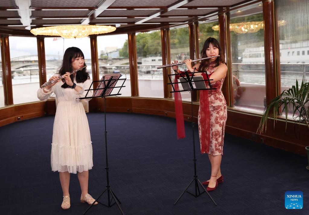 Chinese students perform during Mid-Autumn celebrations aboard a cruise ship in Paris, France on Sept. 10, 2022. (Xinhua/Gao Jing)