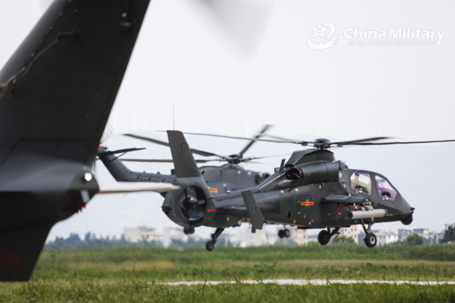 Helicopters attached to a brigade under the PLA 75th Group Army conduct flight training on August 17, 2022. Multiple types of helicopters participated in the training. (eng.chinamil.com.cn/Photo by Li Chunguo)