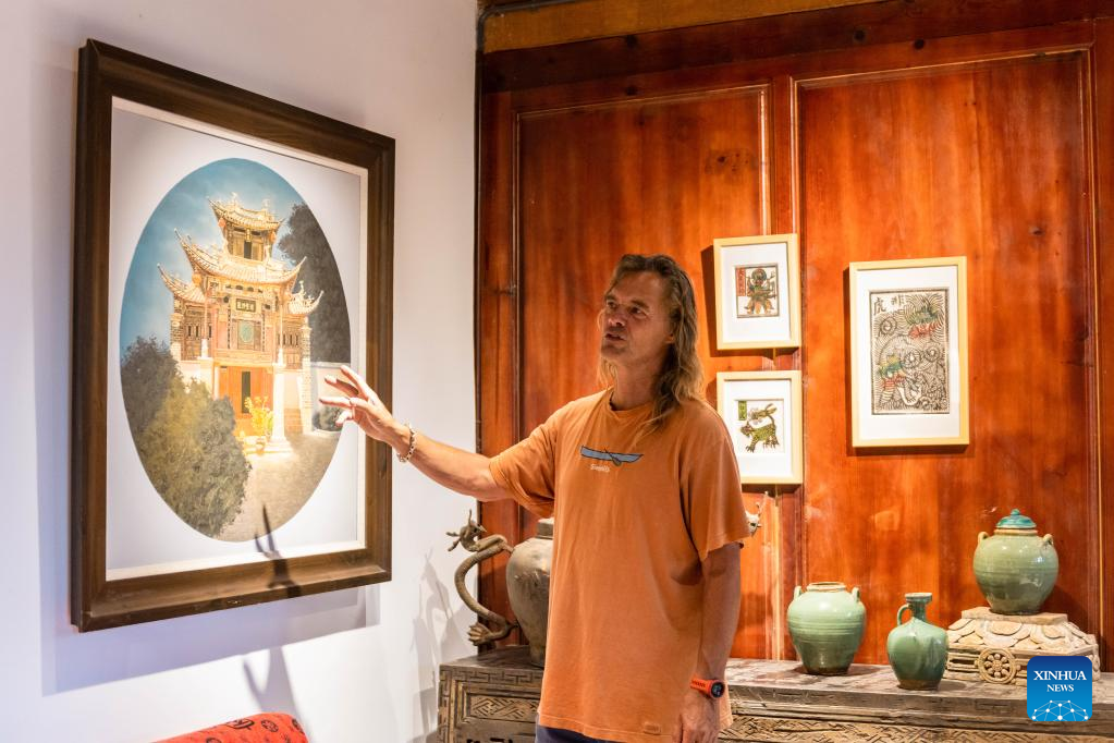 KUNMING, Sept. 13 (Xinhua) -- Over a decade after opening his first hotel and cultural center in Xizhou town of southwest China's Yunnan Province, Brian Linden and his team opened their third project in 2021 in the province's Shaxi township, with the new site overlooking an ancient Bai ethnic village and a tranquil lake.