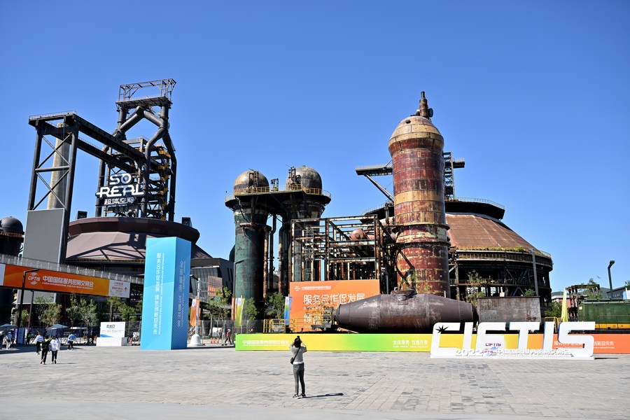 A visitor takes pictures at the Shougang Park during the 2022 China International Fair for Trade in Services (CIFTIS) in Beijing, capital of China, Sept. 5, 2022. (Xinhua/Li Xin)