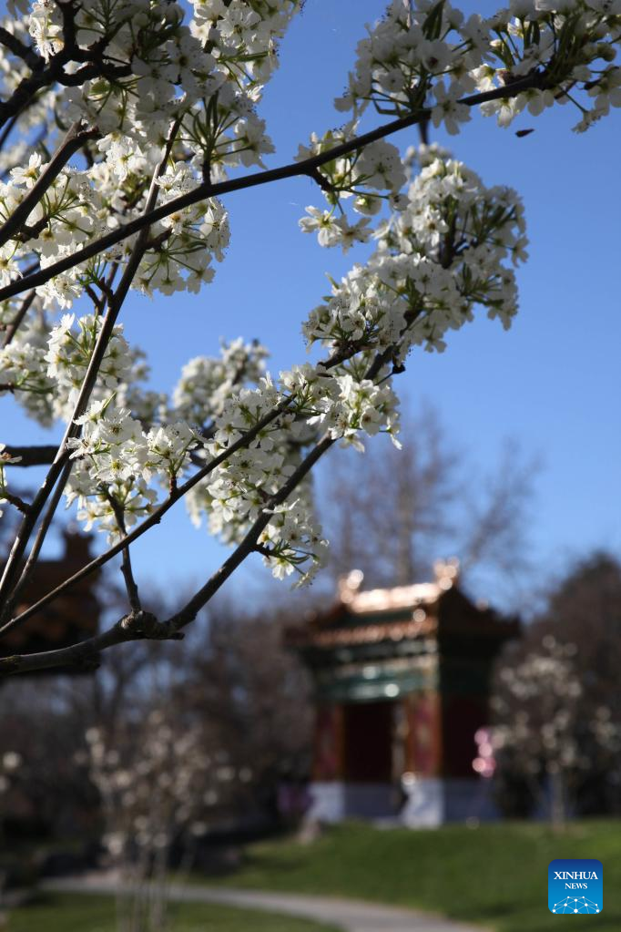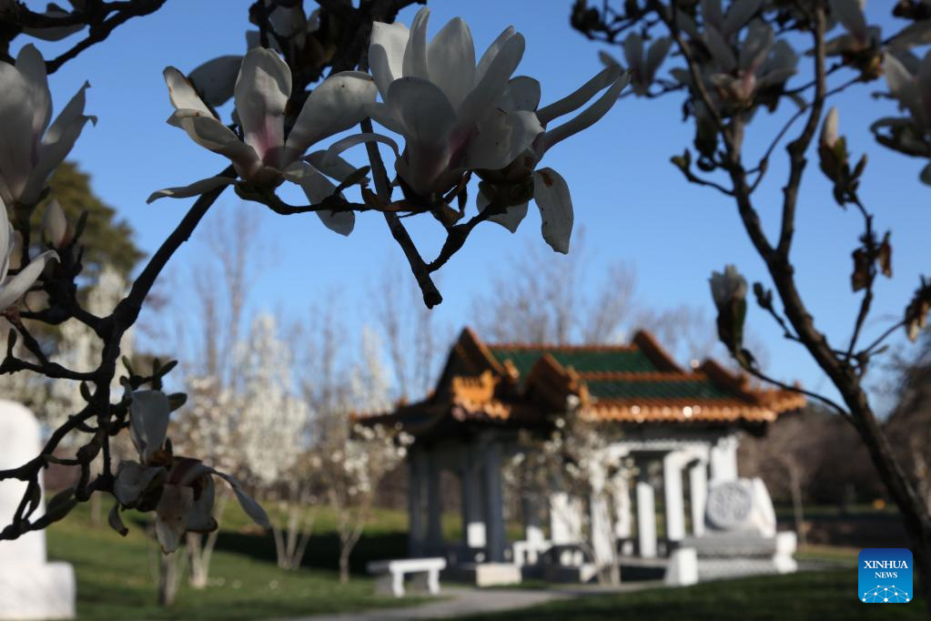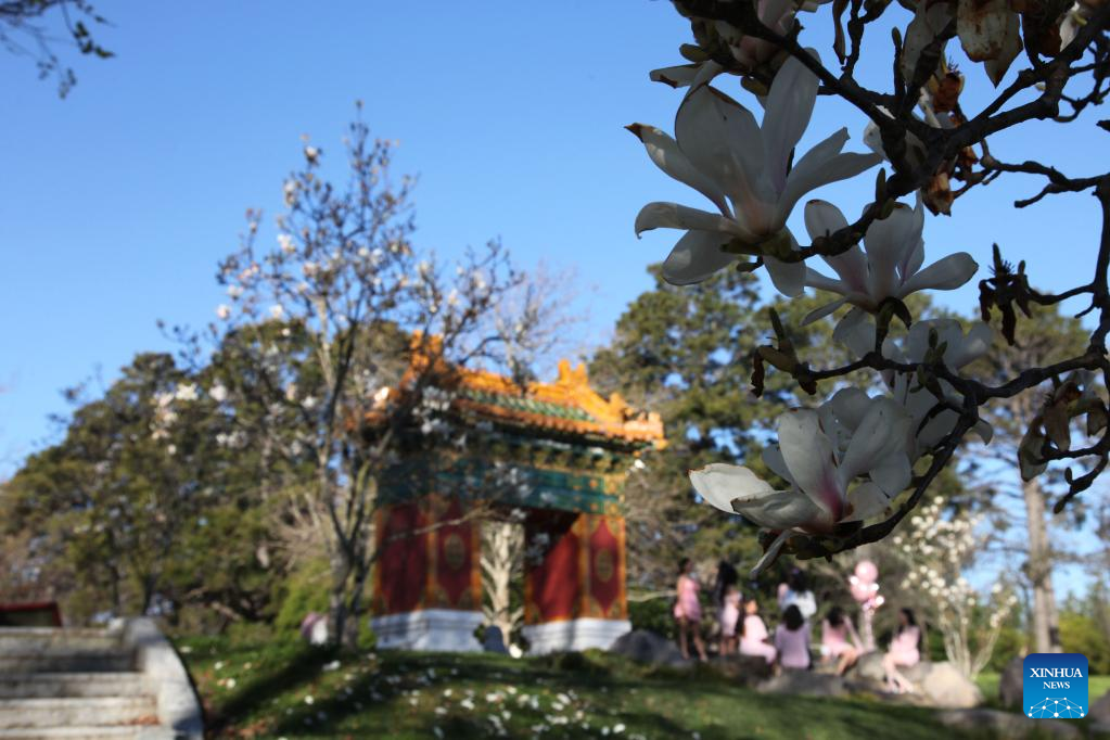 Photo taken on Sept. 14, 2022 shows flowers in early spring at the Beijing Garden by Lake Burley Griffin in Canberra, Australia. (Xinhua/Bai Xu)