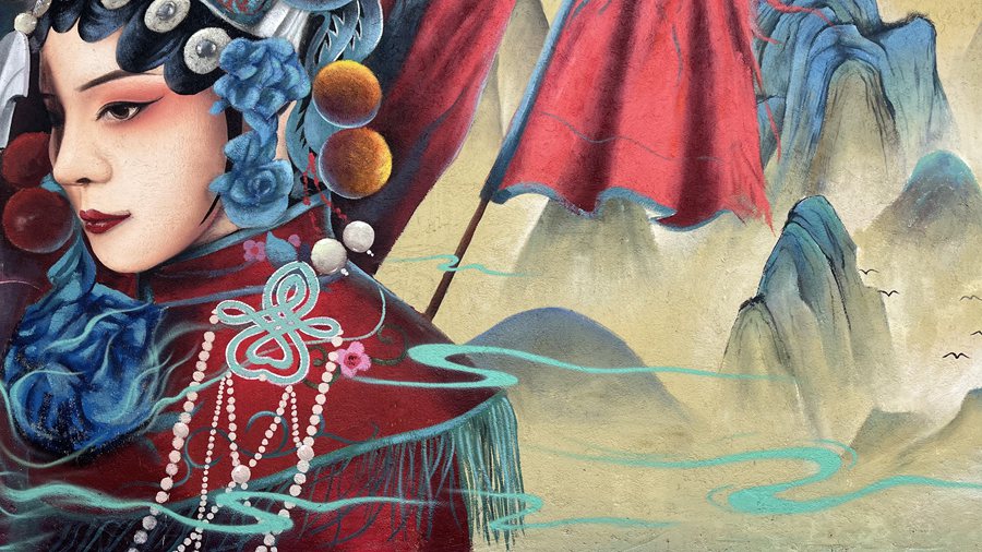 Photo shows a wall painting featuring a female character in Peking Opera. (Photo courtesy of the interviewee)