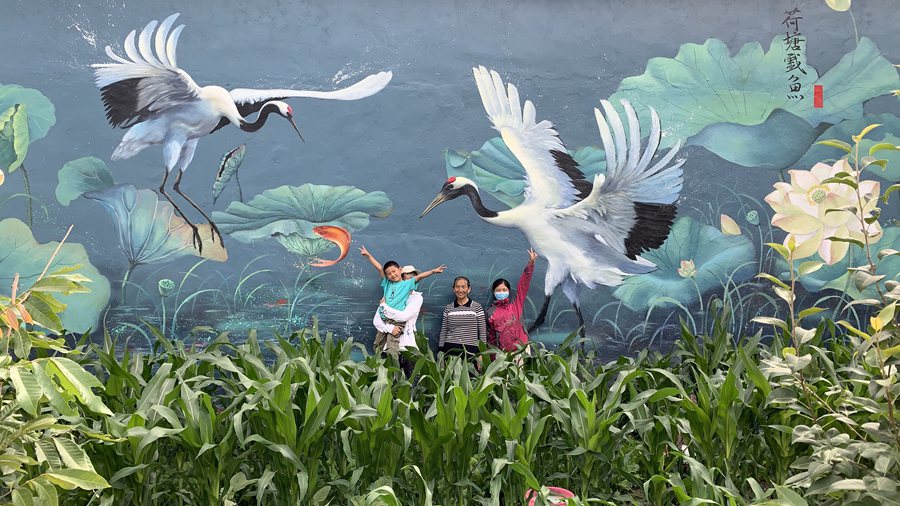 At present, Liu and his partner have created more than 30 wall paintings in the village with different themes, including vivid animals, cute cartoon characters, and picturesque landscapes. The short videos recording their painting process have been played tens of millions of times.