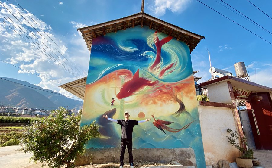 Liu Zhicheng, a wall painter who was born after 1995 in Xingyi village, Lijiang city of southwest China's Yunnan Province, has been trying to bring changes to his hometown using his paint brushes.