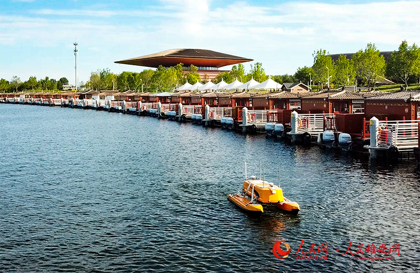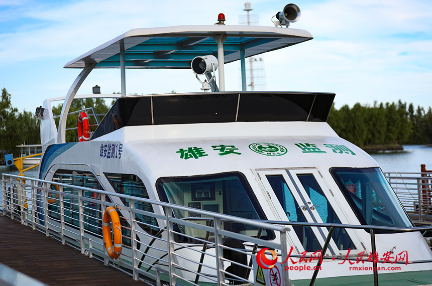 A water-based laboratory monitors water quality at Baiyangdian Lake, Xiongan New Area, north China's Hebei Province. (People's Daily Online/Song Yewen)
