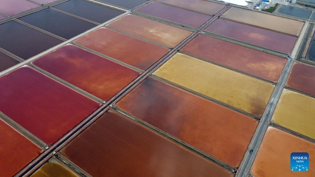 Aerial photo taken on Sept. 14, 2022 shows the Changlu Hangu salt field, one of China's oldest coastal salt fields, in north China's Tianjin.