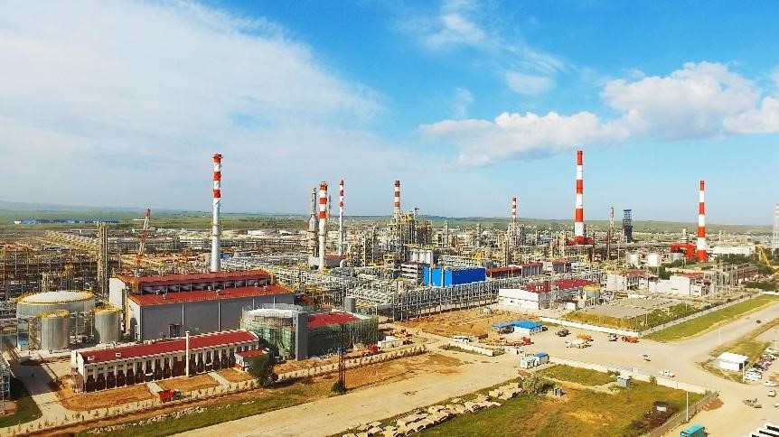 Photo shows the Shymkent Refinery in Kazakhstan. The second phase of the refinery's renovation project was carried out by China Petroleum Engineering & Construction Corporation. (Photo courtesy of the Shymkent Refinery)