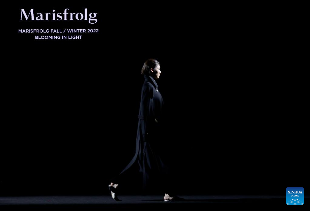 A model presents a creation during the opening ceremony of the Beijing Fashion Week in Beijing, capital of China, Sept. 15, 2022. The 8-day fashion week kicked off in Beijing on Thursday. (Xinhua/Chen Jianli)