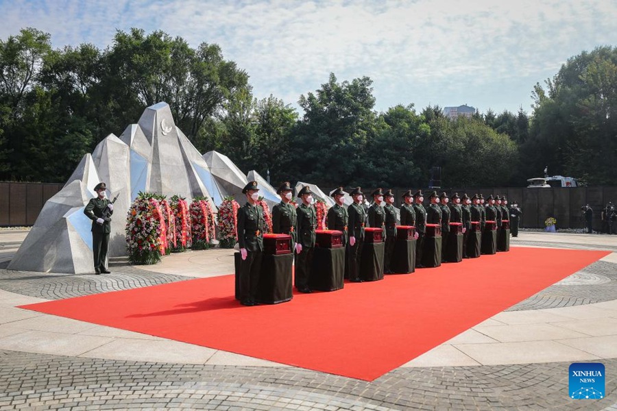 SHENYANG, Sept. 17 (Xinhua) -- The remains of 88 Chinese soldiers killed in the War to Resist U.S. Aggression and Aid Korea were buried Saturday in a cemetery in Shenyang, capital of northeast China's Liaoning Province.