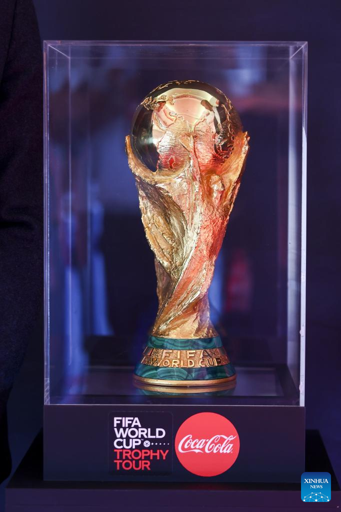 The trophy is on display during the FIFA World Cup Trophy Tour event in Split, Croatia, on Sept.17, 2022. FIFA World Cup Trophy Tour arrives in Split, Croatia on Saturday and is on display to the public during the weekend. (Photo by Miroslav Lelas/PIXSELL via Xinhua)